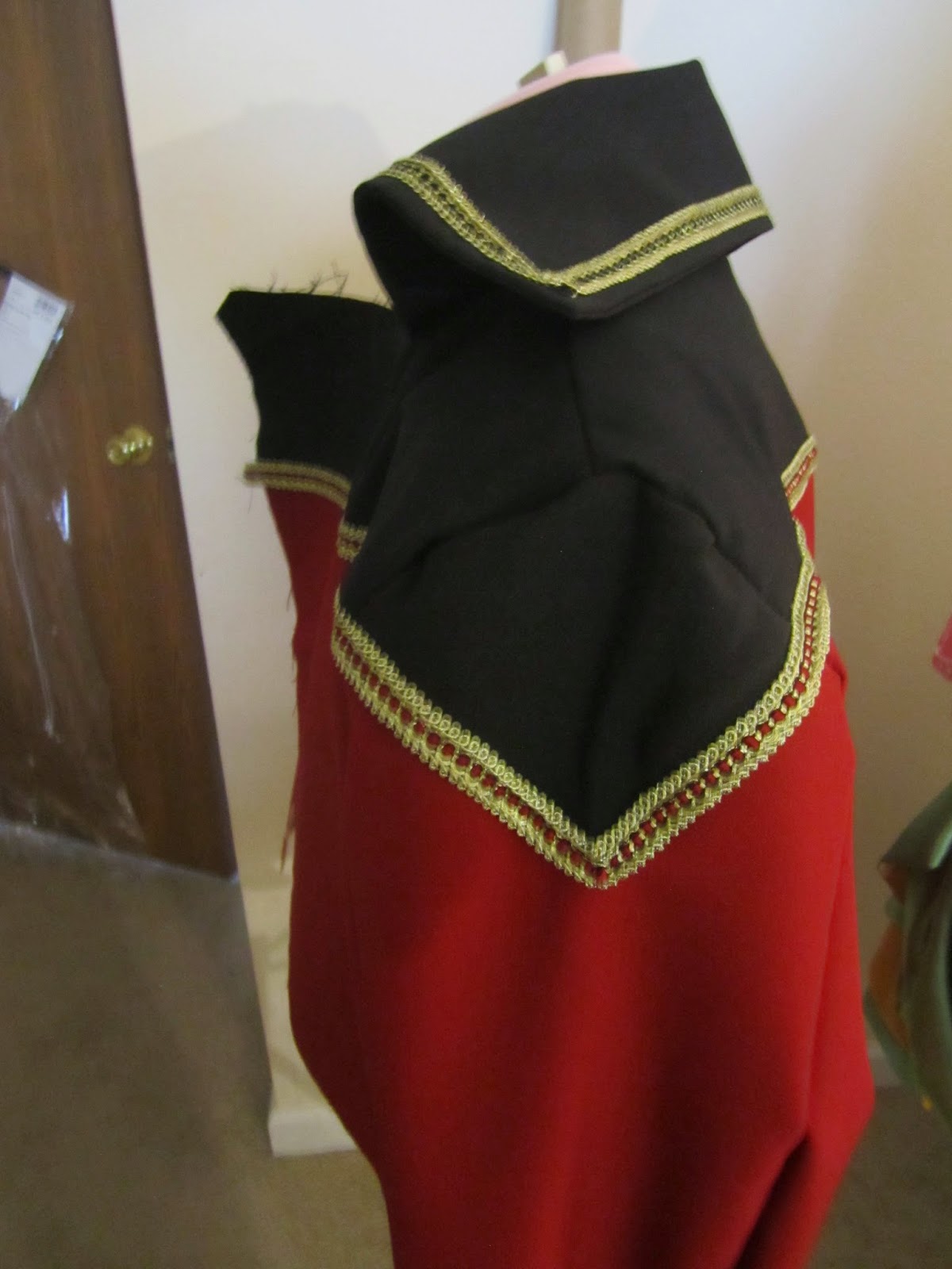 After sewing the front and back together, I made the collar, and added the black braid about a 1/8th from the edge, and then attached it to the neck piece.